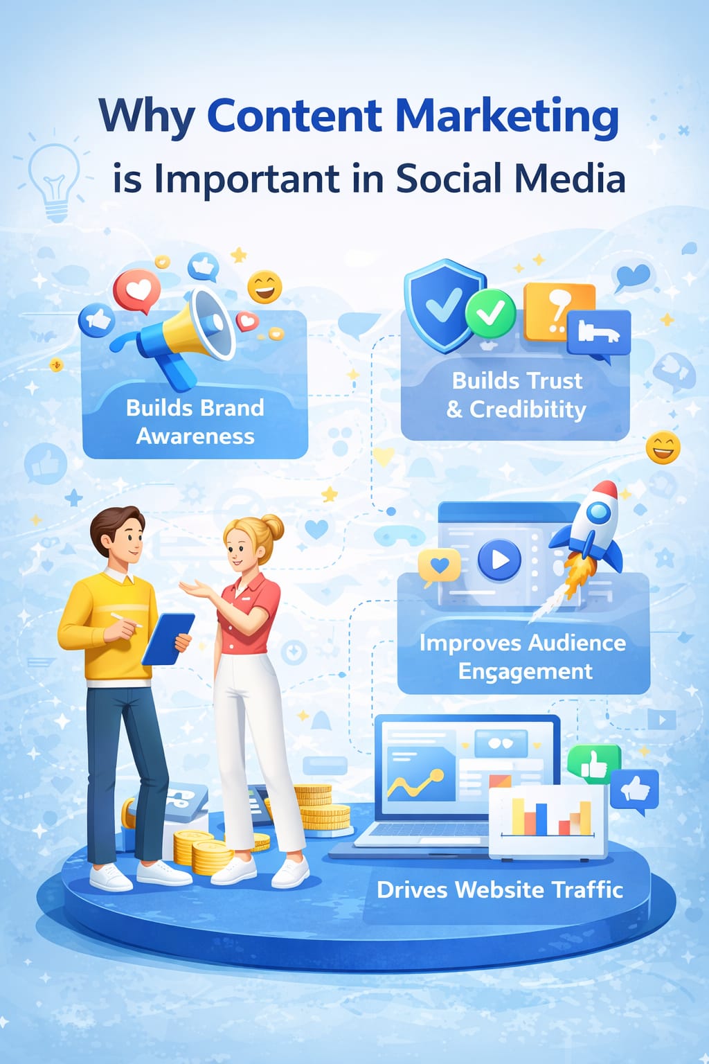 In today’s digital world, social media has become a powerful part of our daily lives. Almost everyone spends time on platforms like Instagram, Facebook, LinkedIn, and YouTube. As a digital marketer, I have understood that social media is not just a place to connect with people, but also a powerful platform for businesses to grow. One of the most important strategies that helps businesses grow on social media is content marketing.